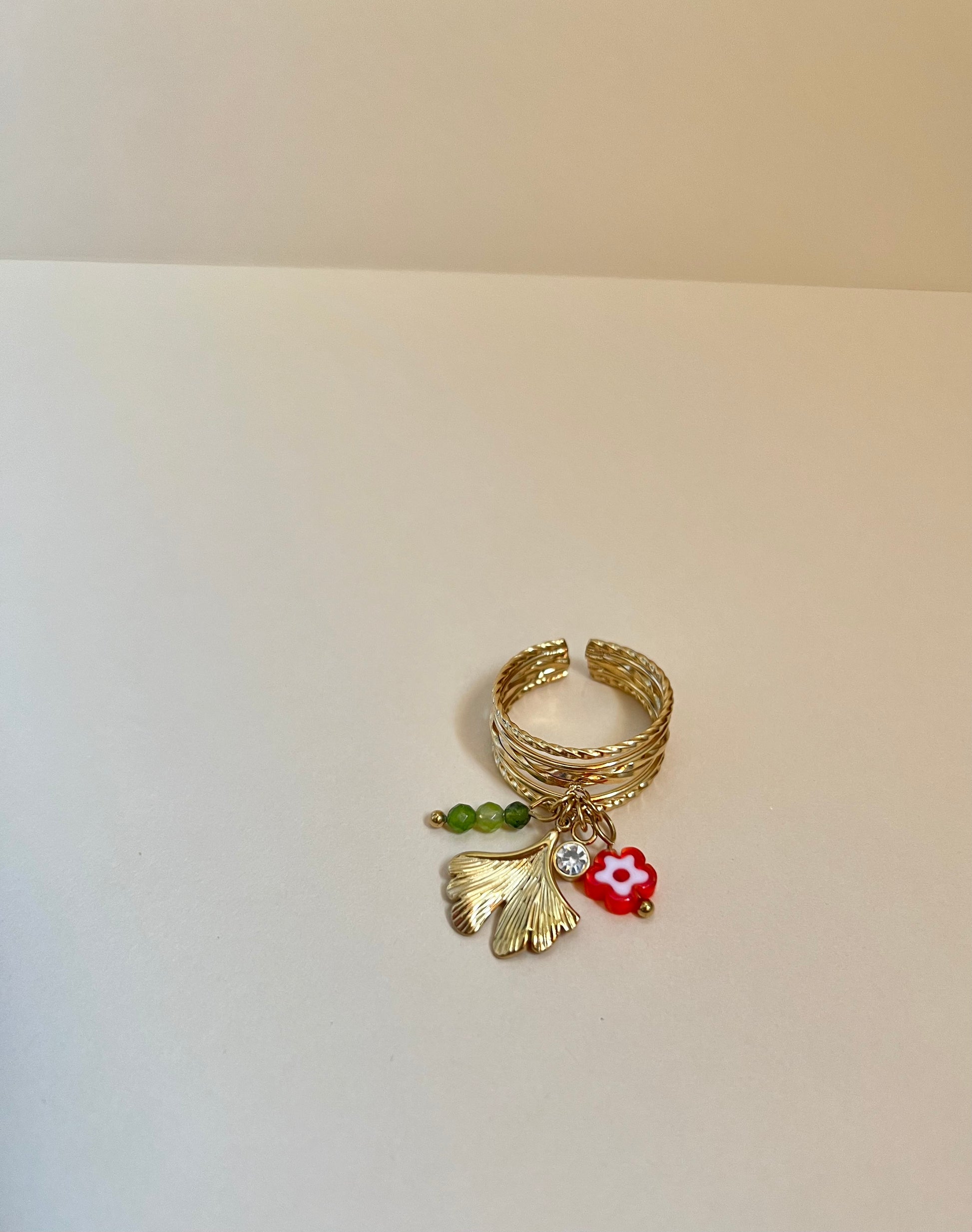 Anello “Coda sirena ” in acciaio inossidabile colorazione gold con charm estivi