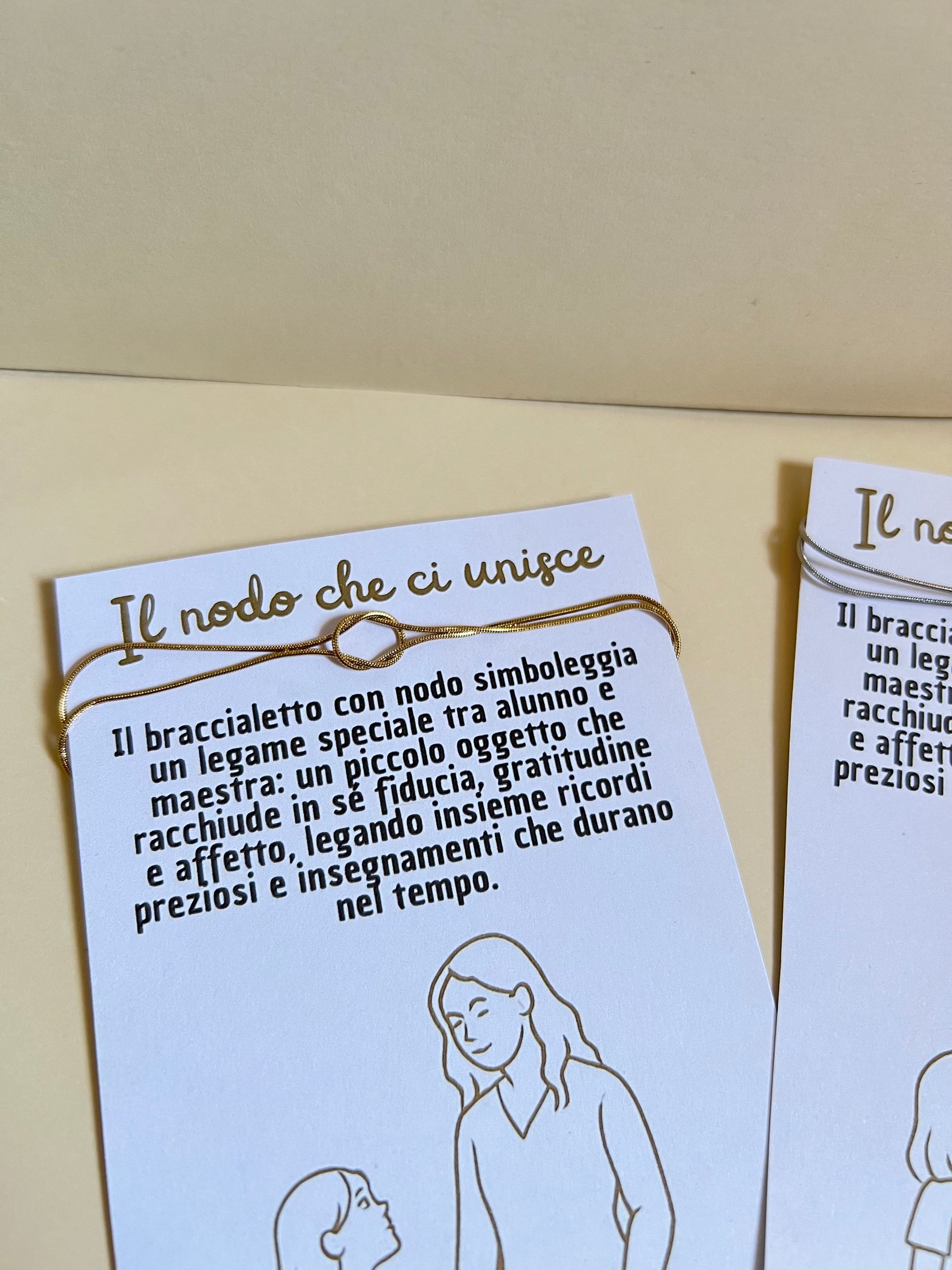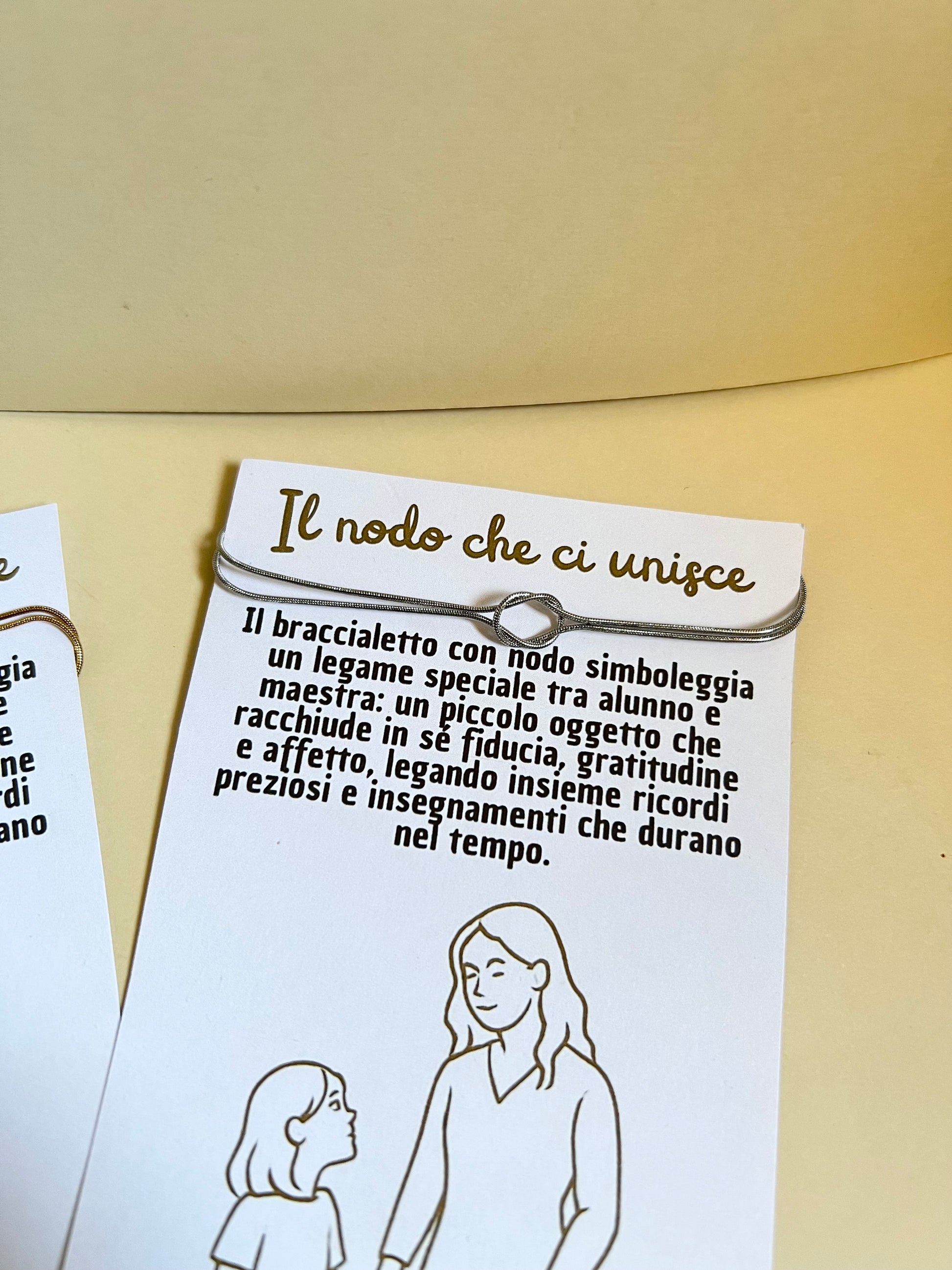 Un braccialetto con nodo, un simbolo che racconta legami preziosi e insegnamenti che durano nel tempo. Questo piccolo gesto racchiude fiducia, gratitudine e affetto: un ricordo speciale per alunni e maestre.