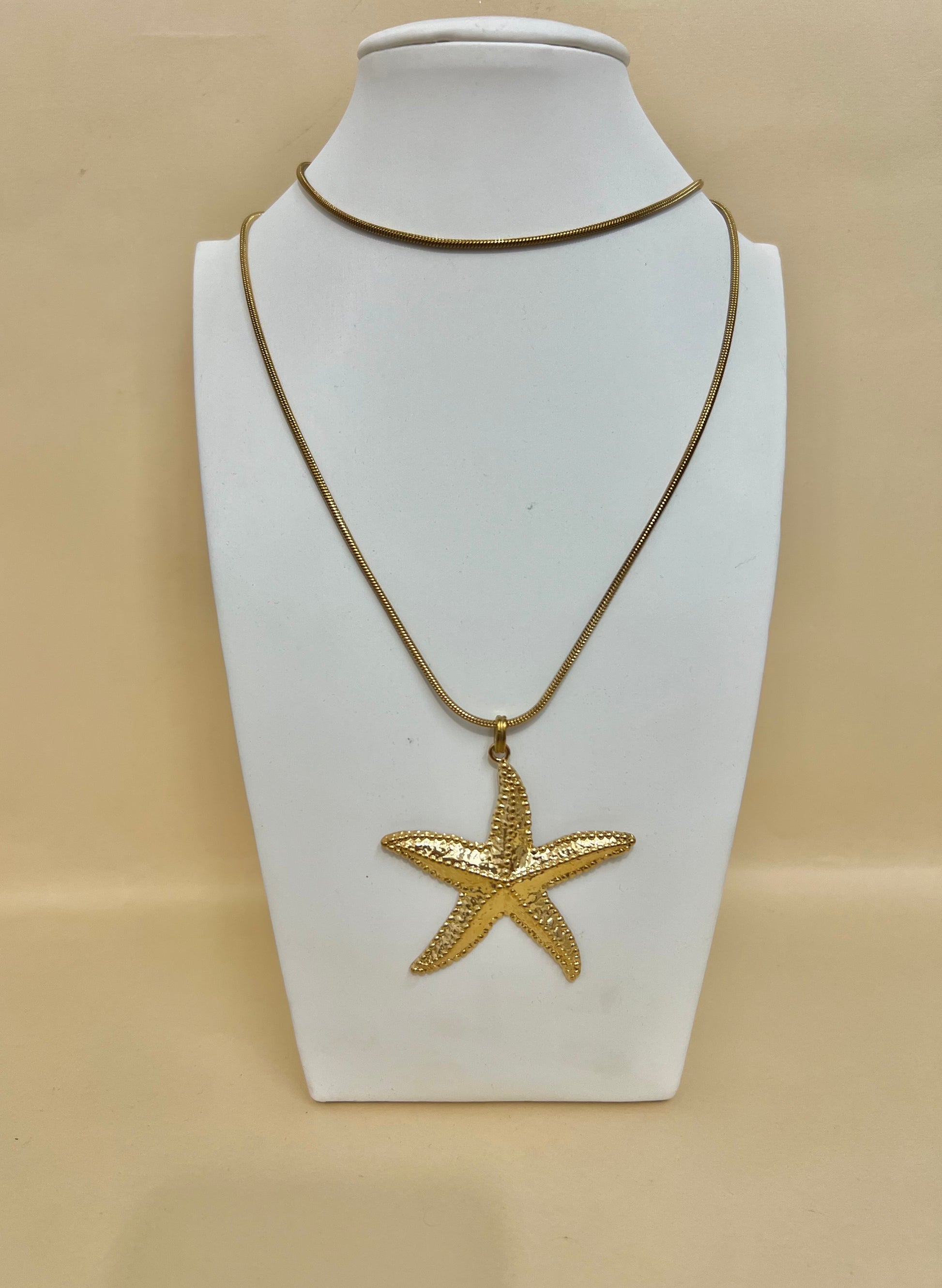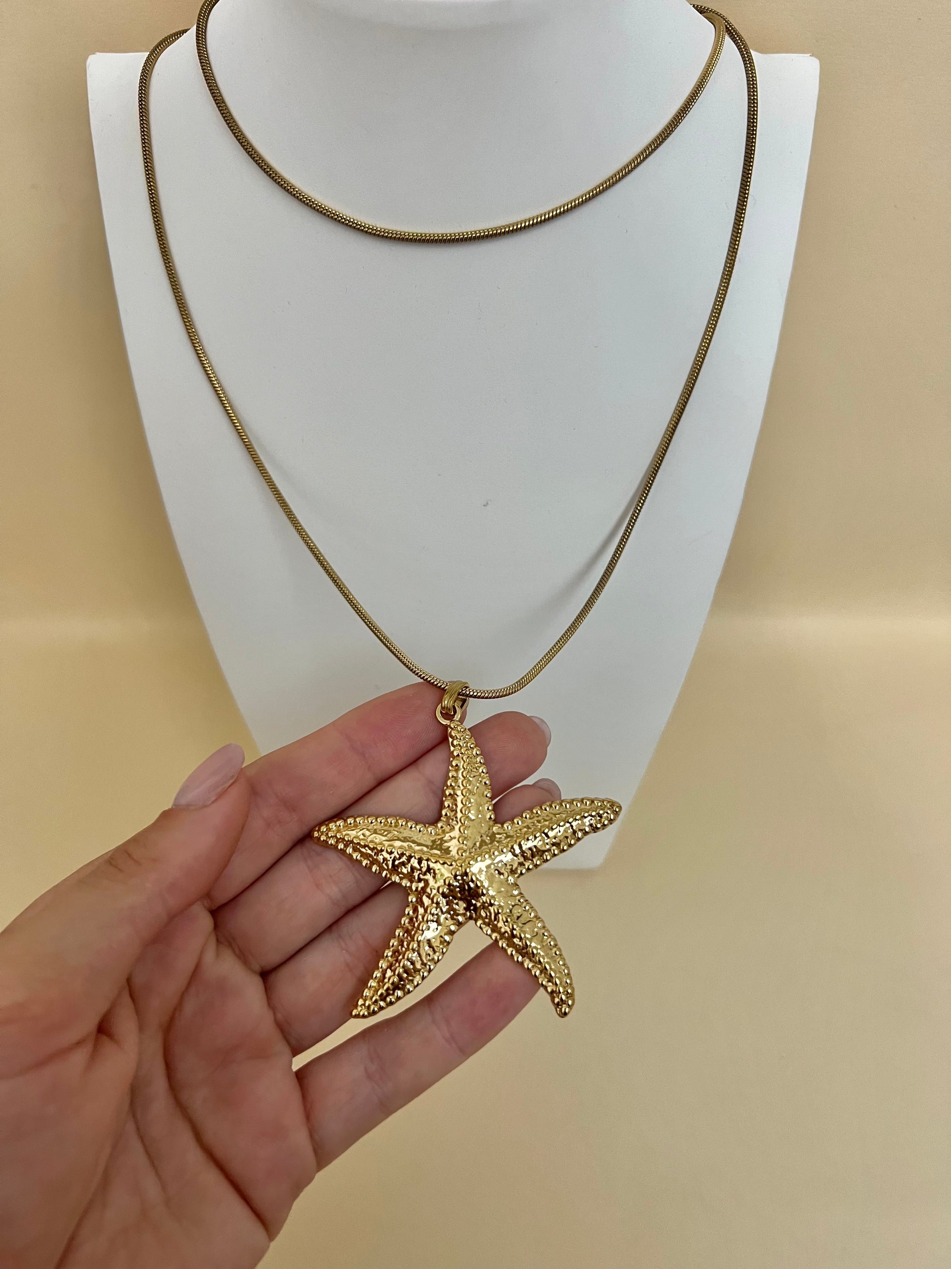 Una collana che cattura l’essenza del mare con eleganza e versatilità. La catenina in acciaio inossidabile gold accoglie una stella marina grande e luminosa, protagonista assoluta del look. La sua lunghezza è regolabile, per permetterti di indossarla a girocollo o lunga, seguendo il tuo stile e il tuo mood. Un accessorio che illumina ogni outfit con un tocco di estate.