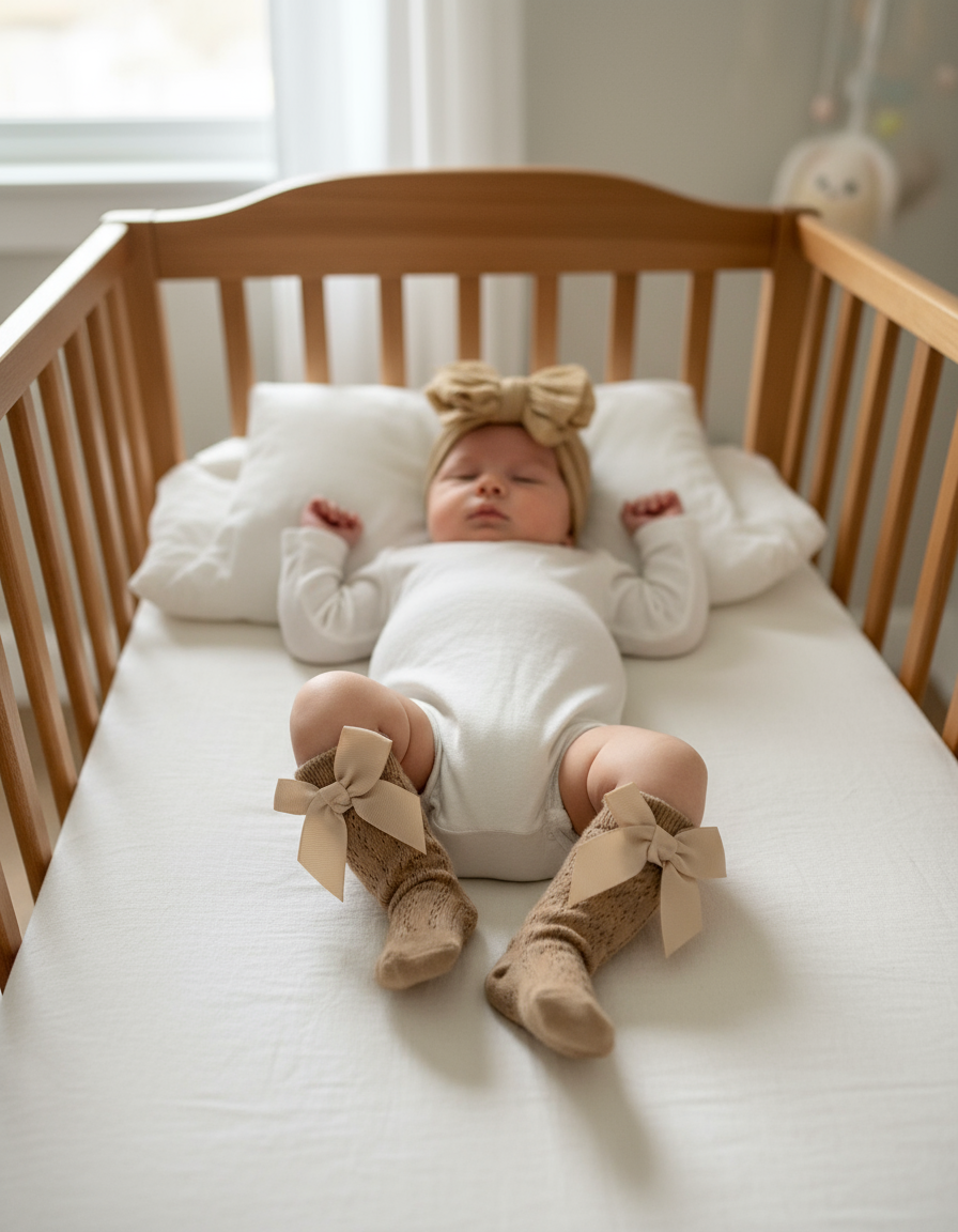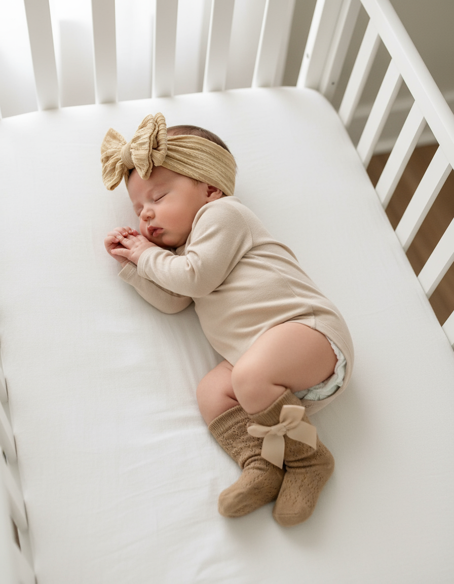 Set calzini + fascia per cappelli 100% cotone adatto da 0 mesi a 12 mesi.