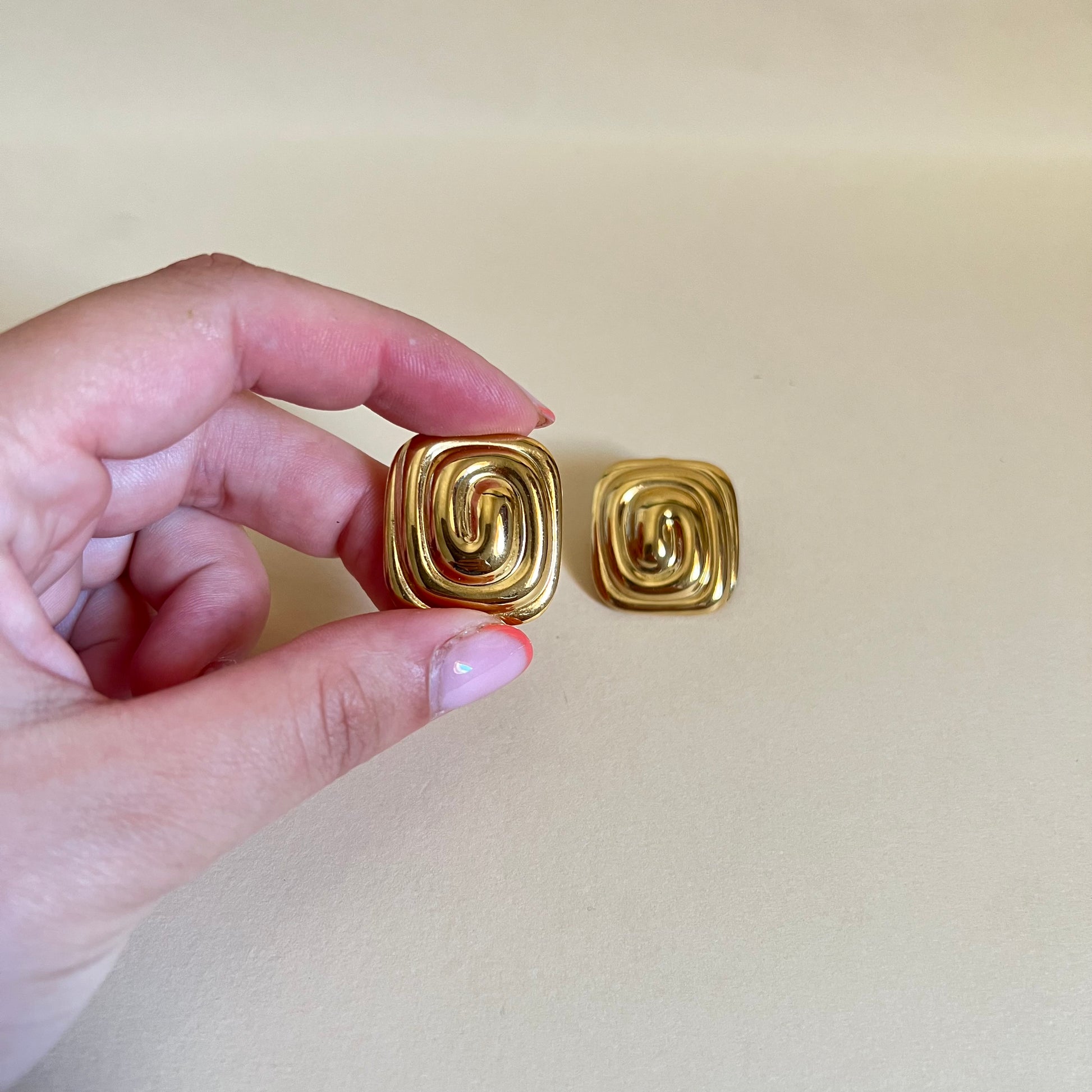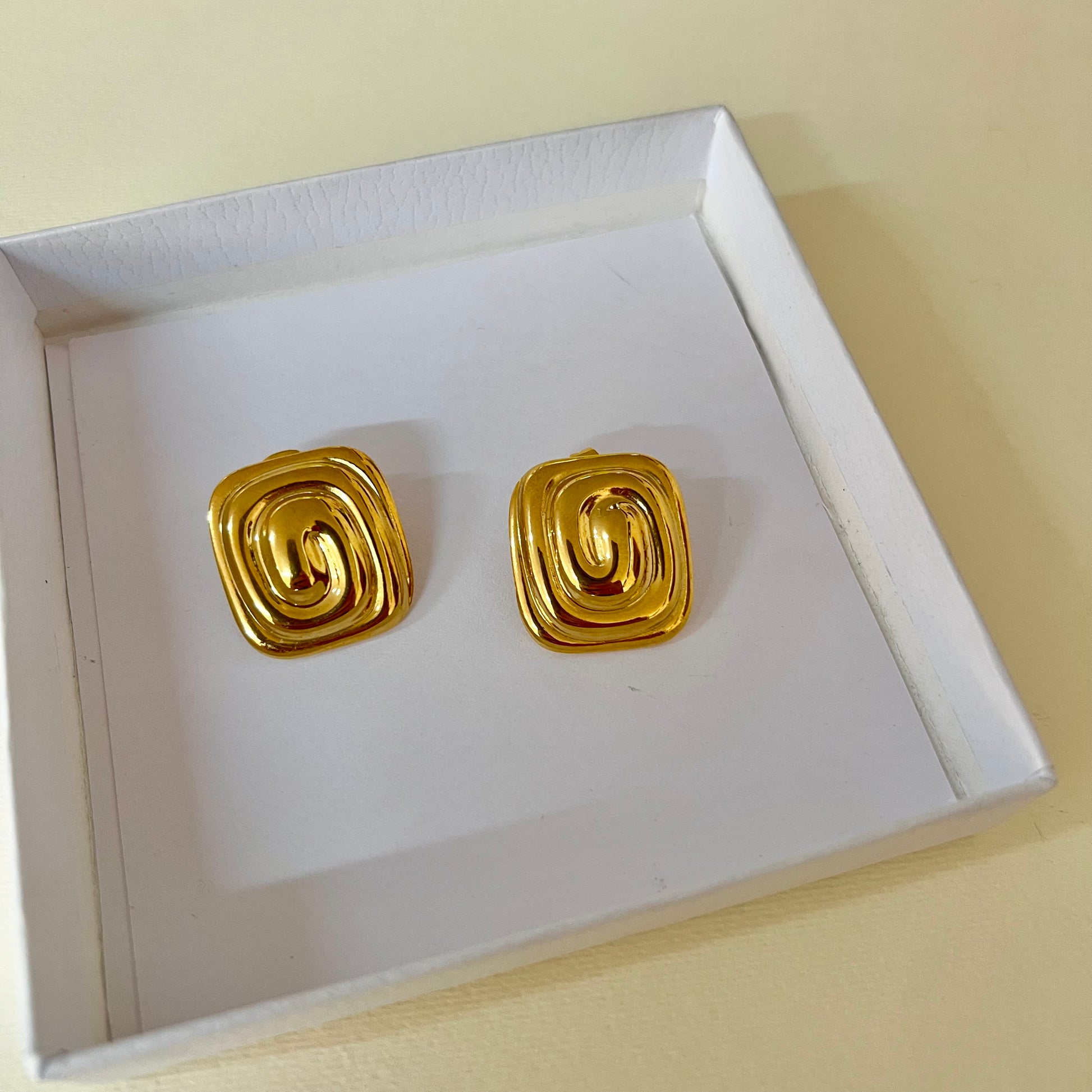 Orecchini “Dubi” dorati in acciaio inossidabile, eleganti e luminosi, perfetti per donare un tocco di classe ad ogni look.