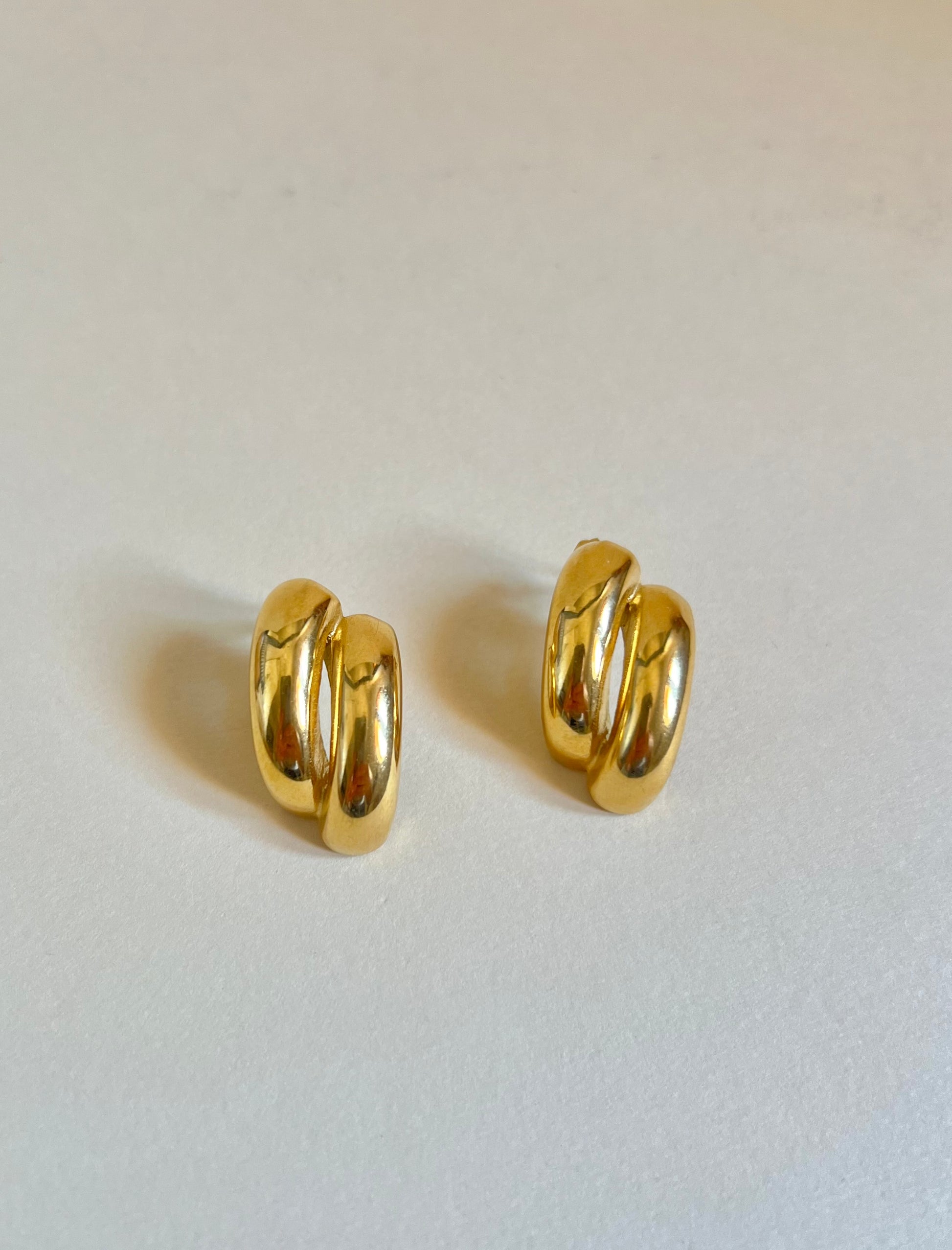 Orecchini Estia dorati in acciaio inossidabile, eleganti e luminosi, perfetti per donare un tocco di classe ad ogni look. Un accessorio che cattura la luce e valorizza il viso con semplicità e raffinatezza.