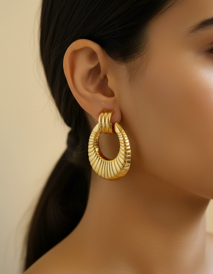 Orecchini “Gaia” in acciaio inossidabile in colorazione gold .
