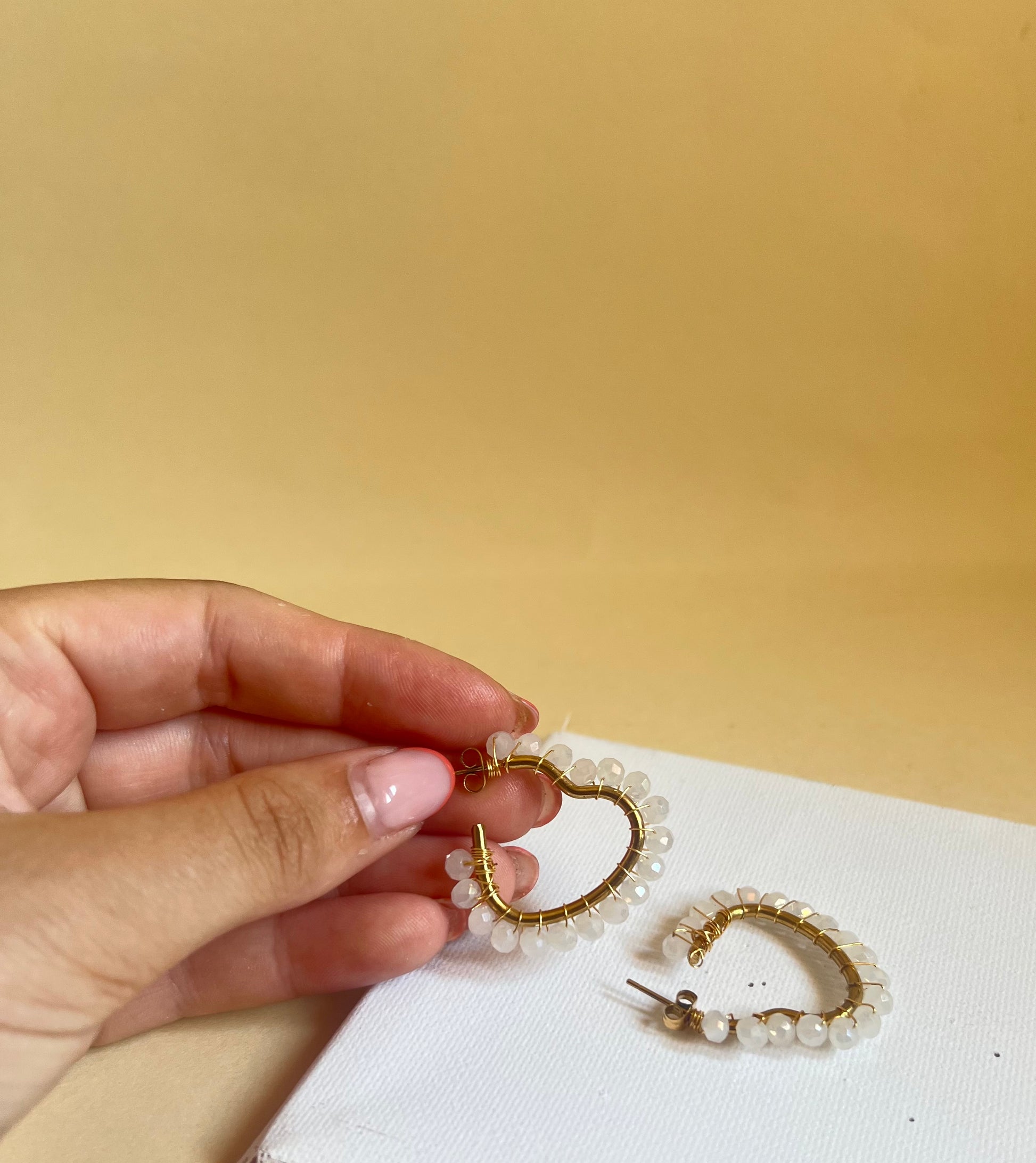 Orecchini “Heart white” In acciaio inossidabile in colorazione gold con perle bianche
