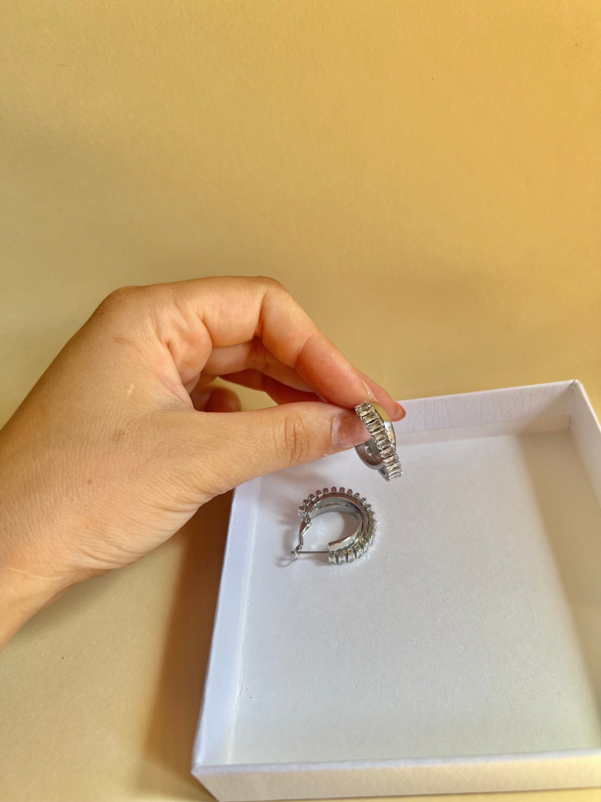 Orecchini “Luce d’argento ” silver in acciaio inossidabile, eleganti e luminosi, perfetti per donare un tocco di classe ad ogni look.