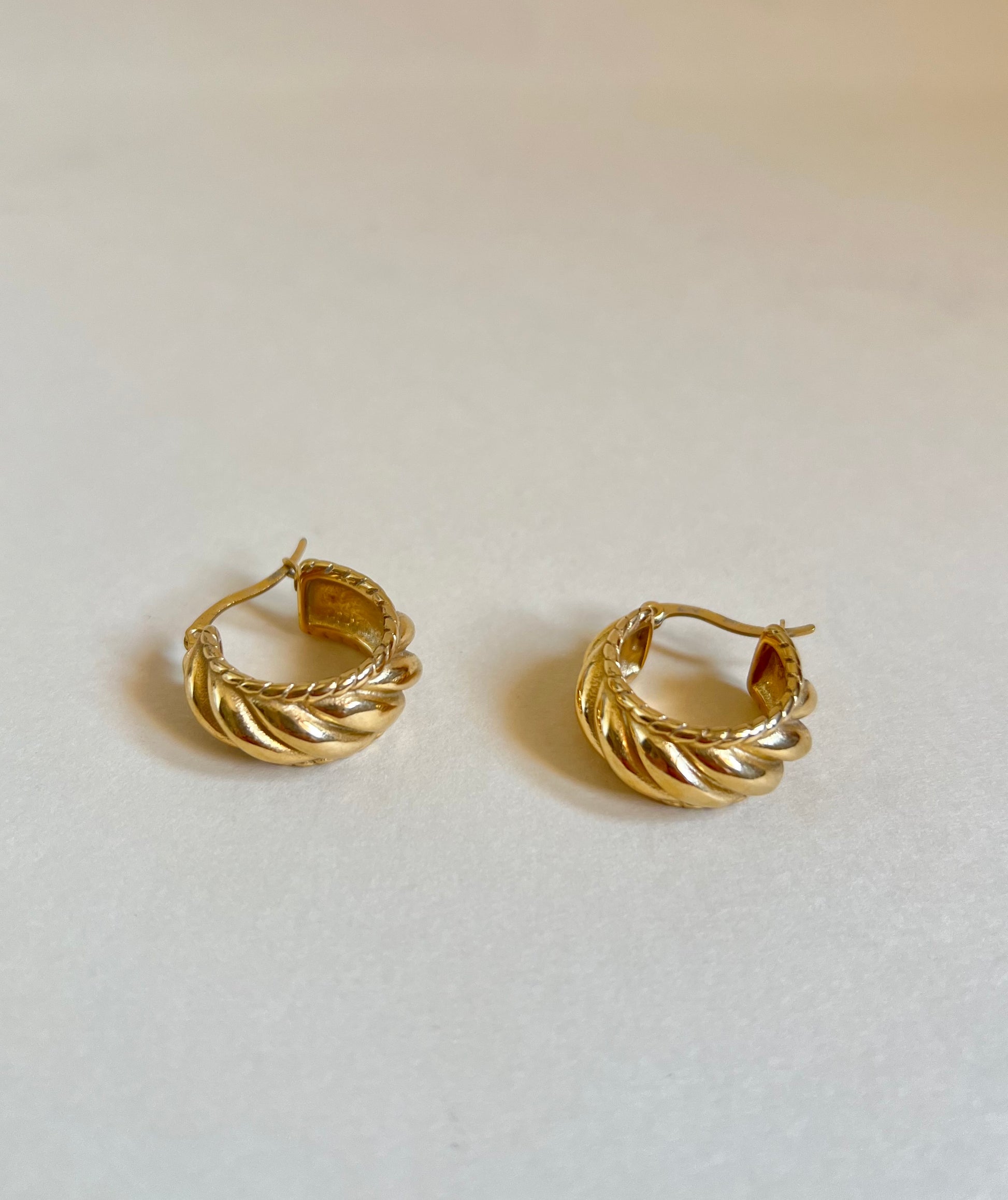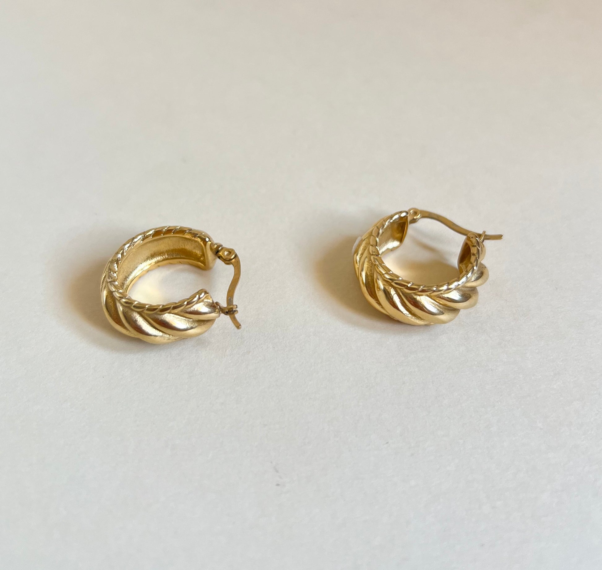 Orecchini dorati in acciaio inossidabile, eleganti e luminosi, perfetti per donare un tocco di classe ad ogni look. Un accessorio che cattura la luce e valorizza il viso con semplicità e raffinatezza.