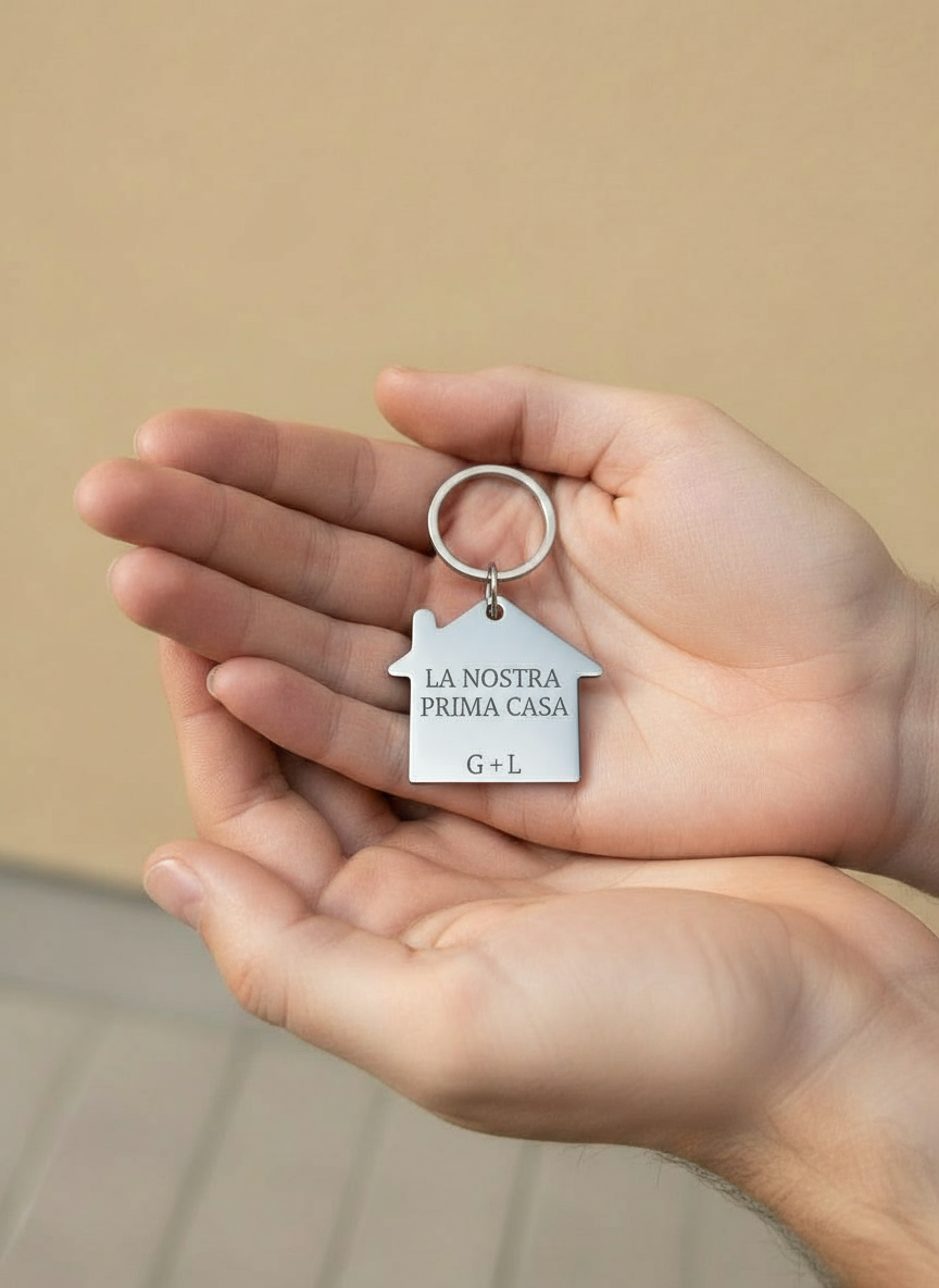Portachiavi a forma di casa che celebra i nuovi inizi e i traguardi importanti della vita. Perfetto per chi si trasferisce, acquista la prima casa o semplicemente desidera un ricordo speciale. Personalizzabile con una frase significativa, le tue iniziali o i nomi di chi ami. Un dettaglio delicato che trasforma le chiavi quotidiane in un simbolo di speranza e cambiamento positivo.