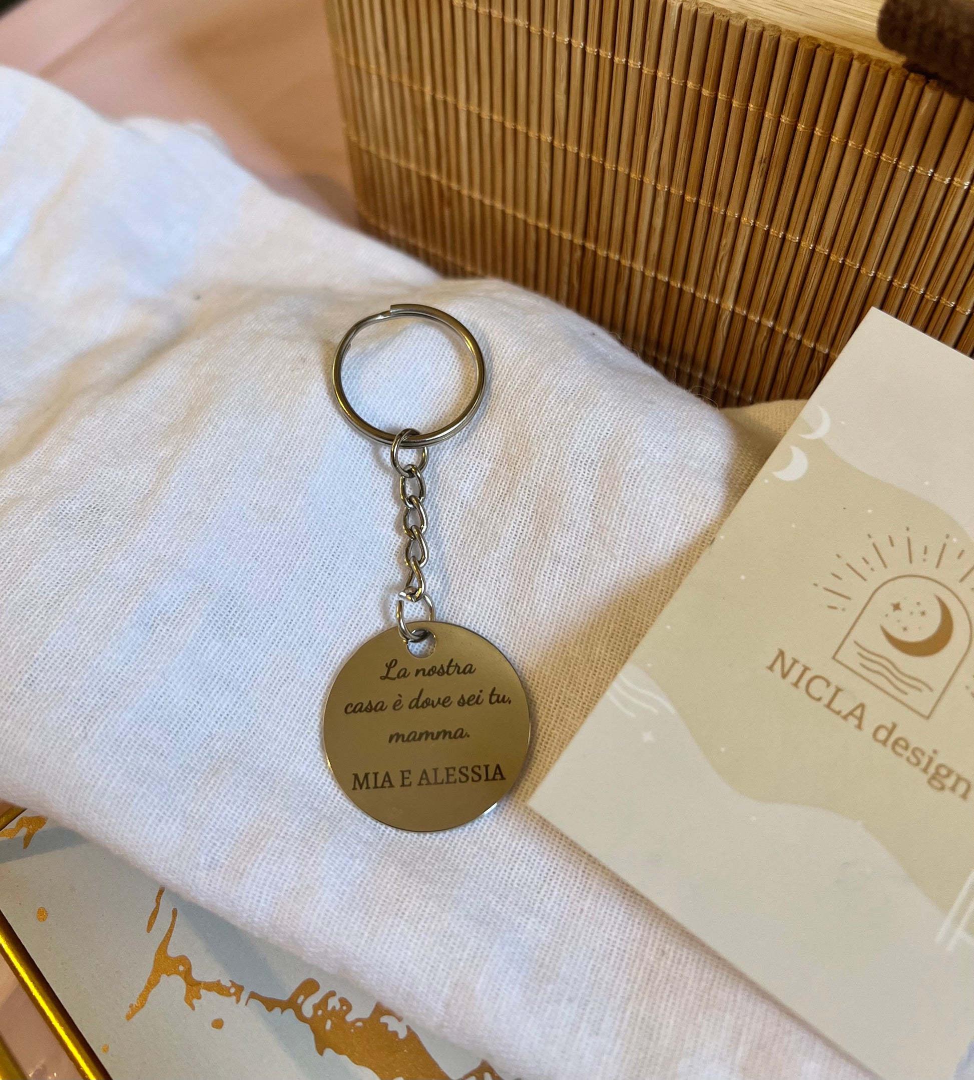 Portachiavi ovale in acciaio inossidabile, perfetto come dedica per la mamma. Personalizzalo con la frase che più ti emoziona e, se desideri, aggiungi i nomi per renderlo ancora più speciale!
