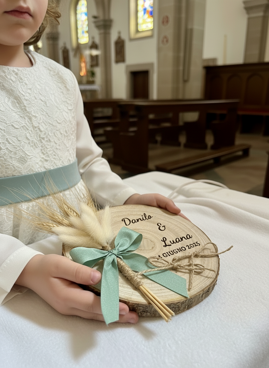 Il portafedi in legno è la scelta ideale per le coppie che vogliono celebrare un matrimonio ecologico e sostenibile. La naturale bellezza del legno aggiunge un tocco rustico e accogliente alla cerimonia, rendendola ancora più speciale e senza tempo.