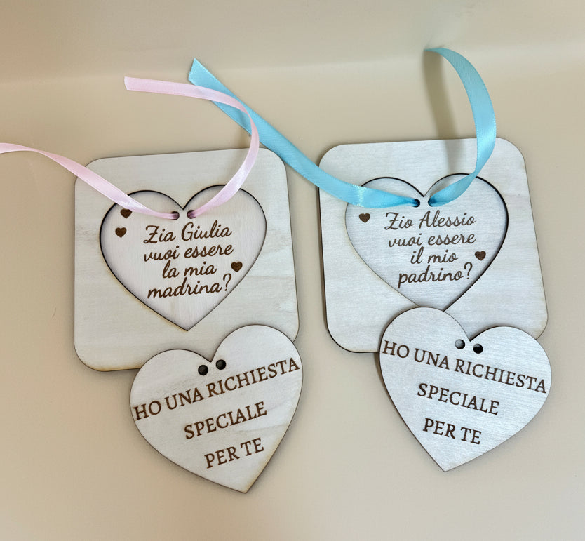 Cuore in legno apribile con dedica personalizzata: un’idea emozionante per chiedere a una persona speciale di essere testimone o madrina. Personalizzabile con la frase che desideri, per un ricordo unico e indimenticabile.