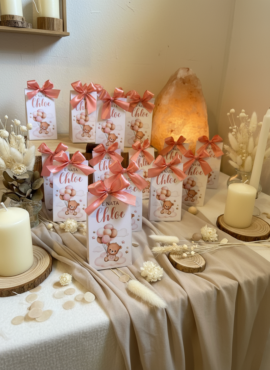Scatoline porta confetti - Grafica Teddy girl con palloncino . Un’idea dolce, originale e conveniente per festeggiare una nascita o qualsiasi altro evento speciale!Ogni scatolina è completa di confetti e decorata con una tenera grafica a tema Teddy con palloncino, perfetta per : Bomboniere nascita, Segnaposto battesimo, baby shower o compleanni . Personalizzabili su richiesta per rendere ogni dettaglio unico .