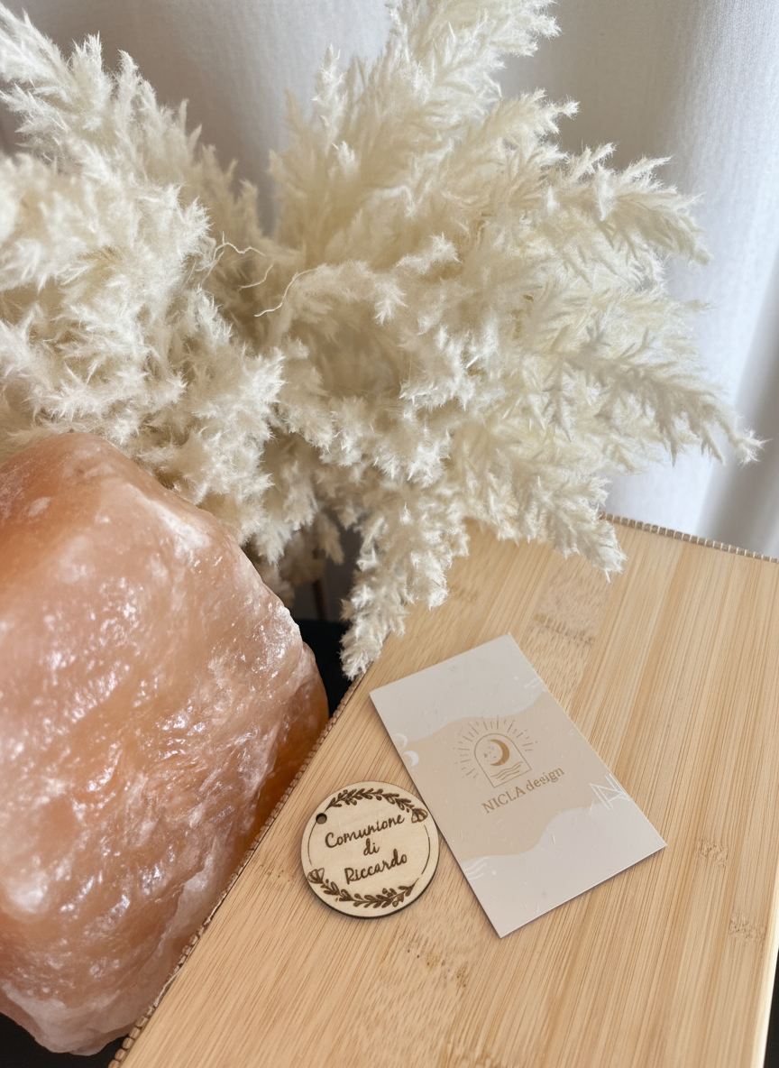 Segnaposto in legno con grafica floreale e incisione personalizzata è perfetto per la Comunione, ma versatile per altri eventi speciali, come battesimi, matrimoni o compleanni. Un'idea elegante e significativa, che aggiunge un tocco personale a qualsiasi celebrazione.